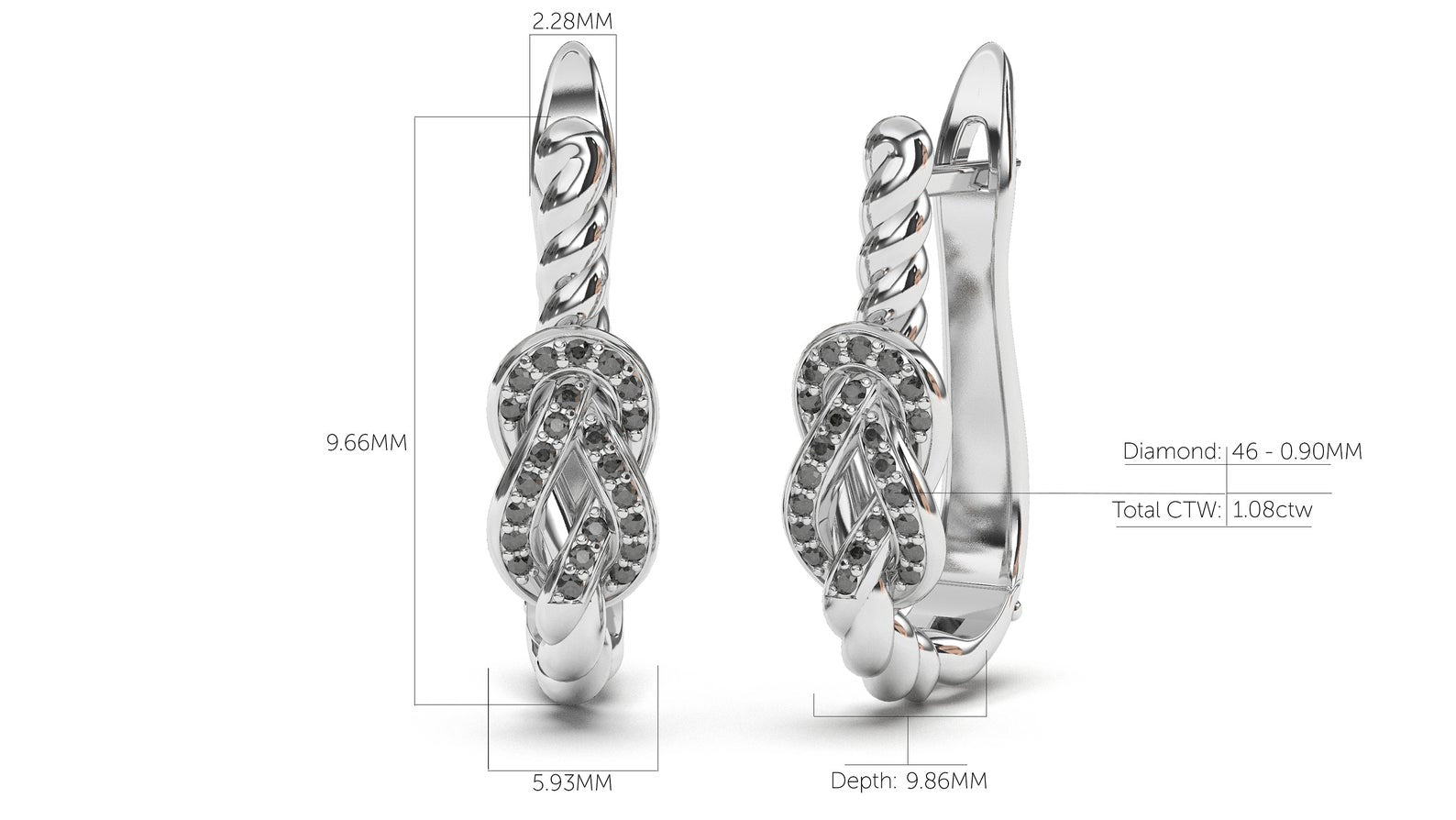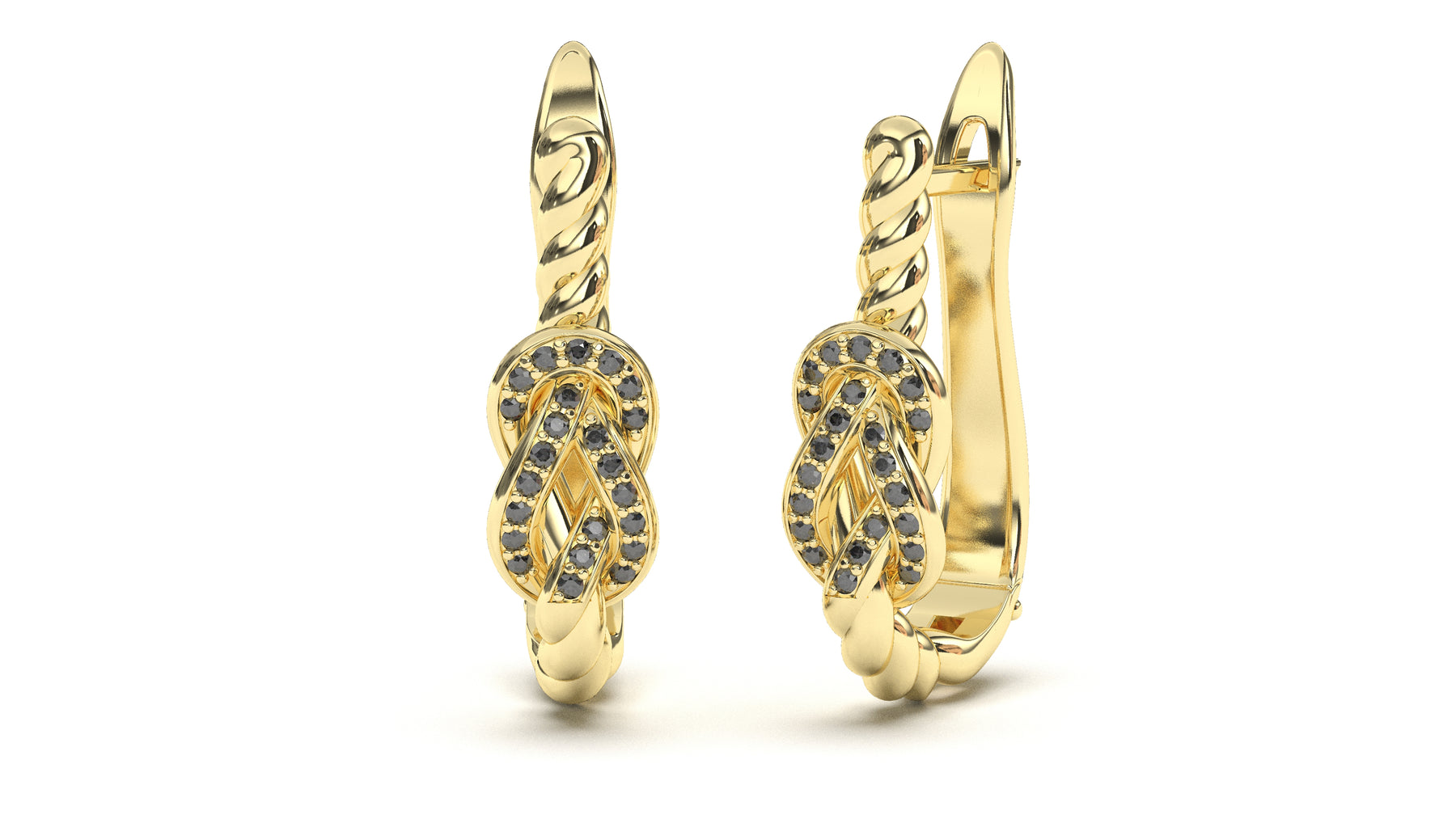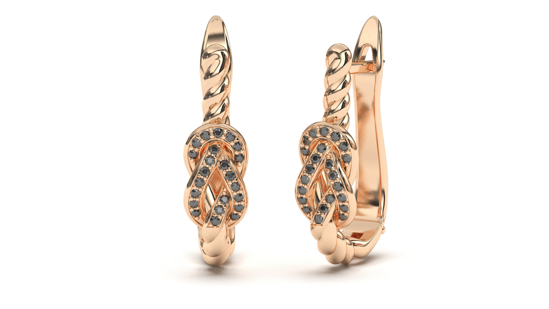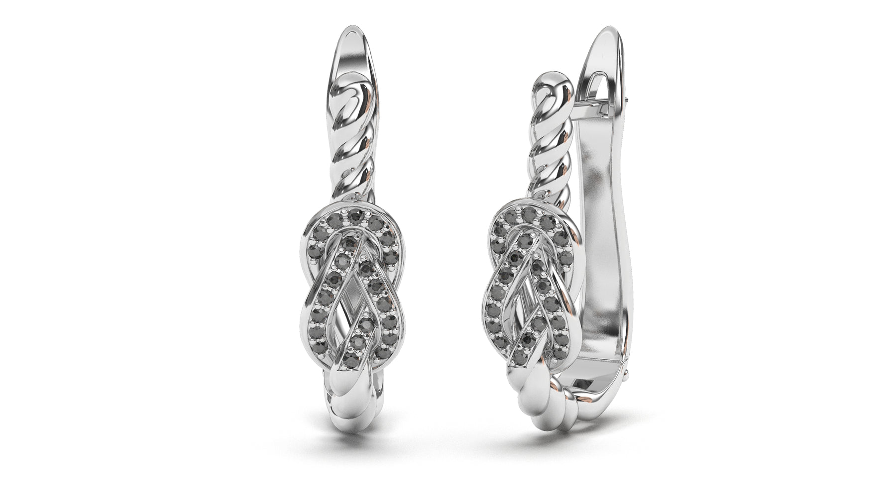 Braid Style Earrings Encrusted with Round Black Diamonds | Knots Twist III