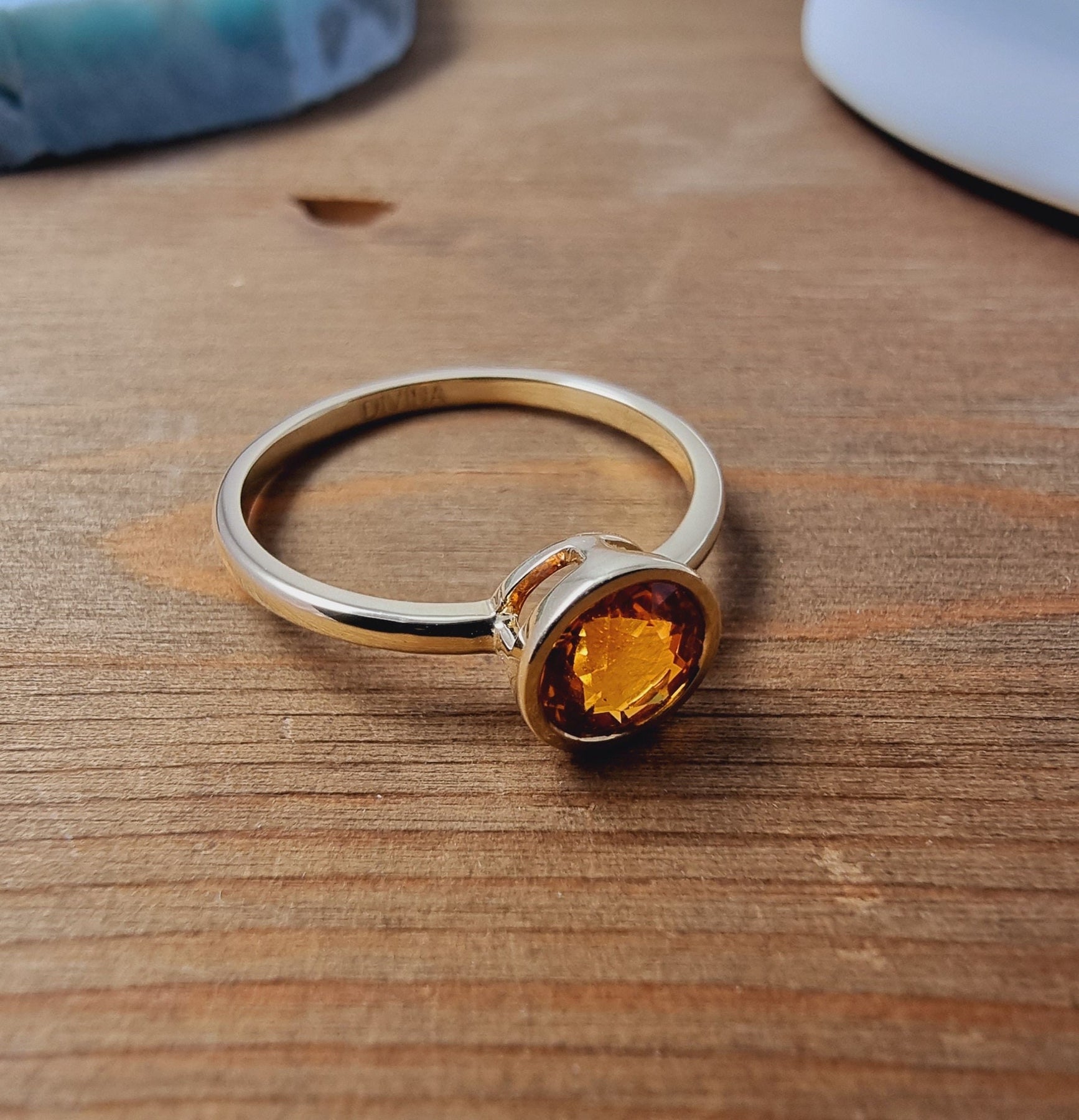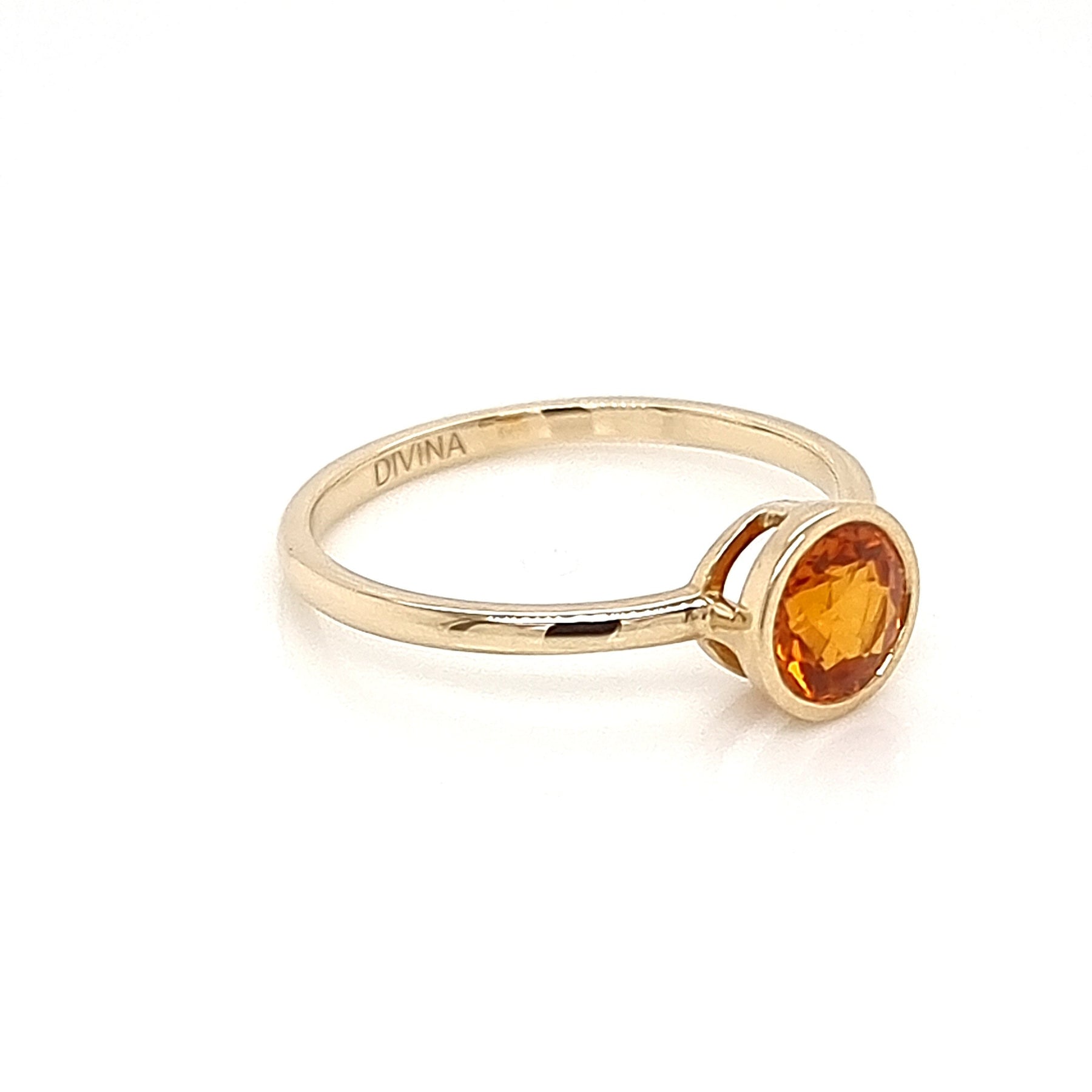 Solitaire Orange Sapphire Ring in Bezel Setting made of 14K Yellow Gold 1.22 TCW