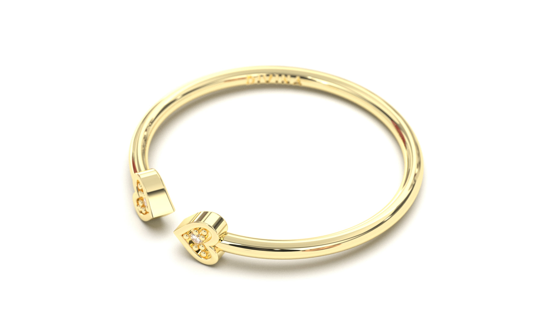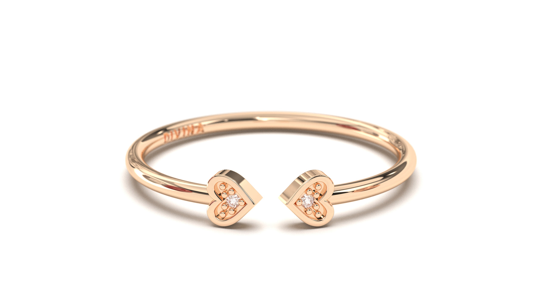 Stackable Ring with Open Design where Two Diamond Encrusted Hearts are Facing Each Other | Mix & Match Trio XX