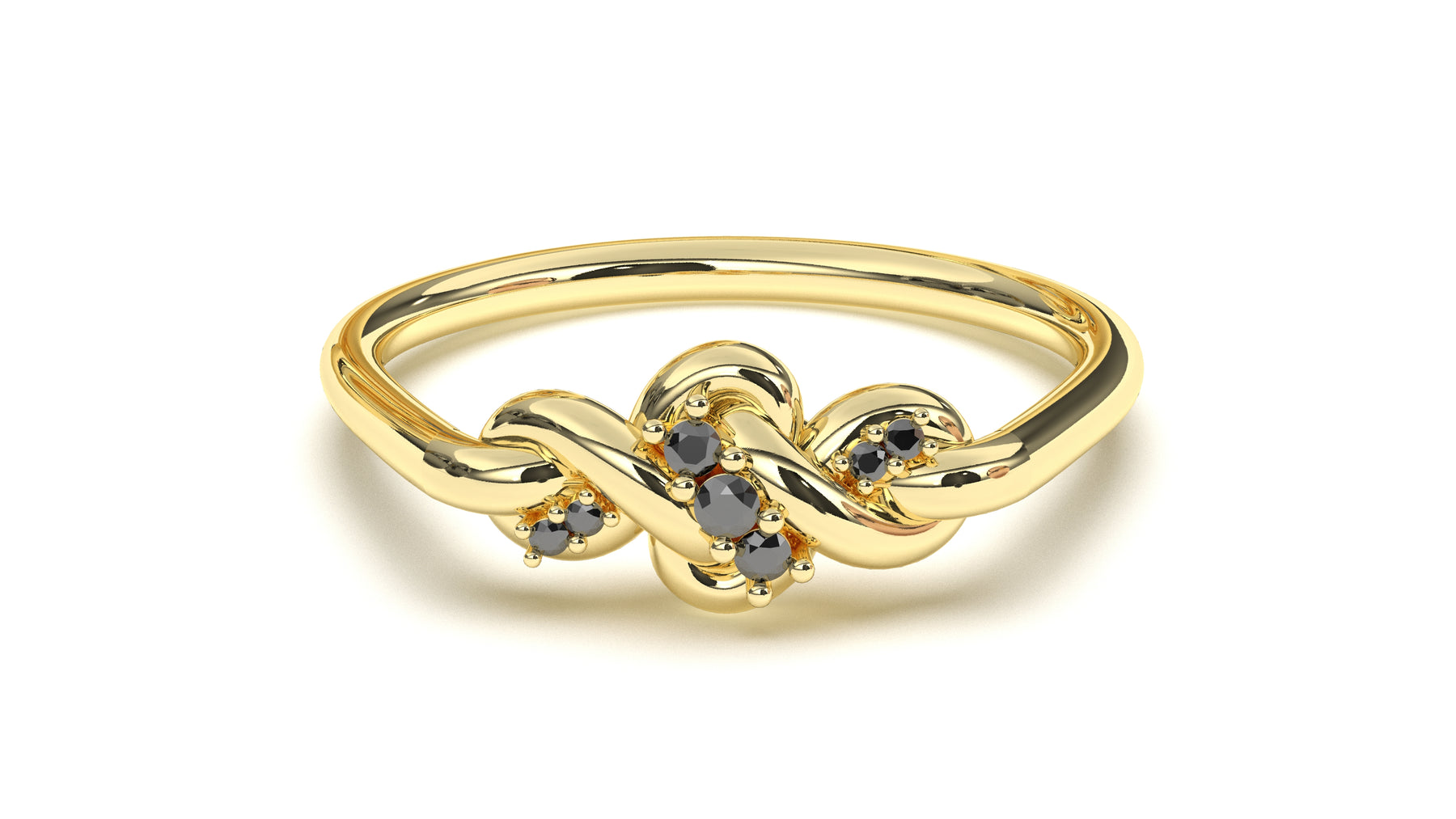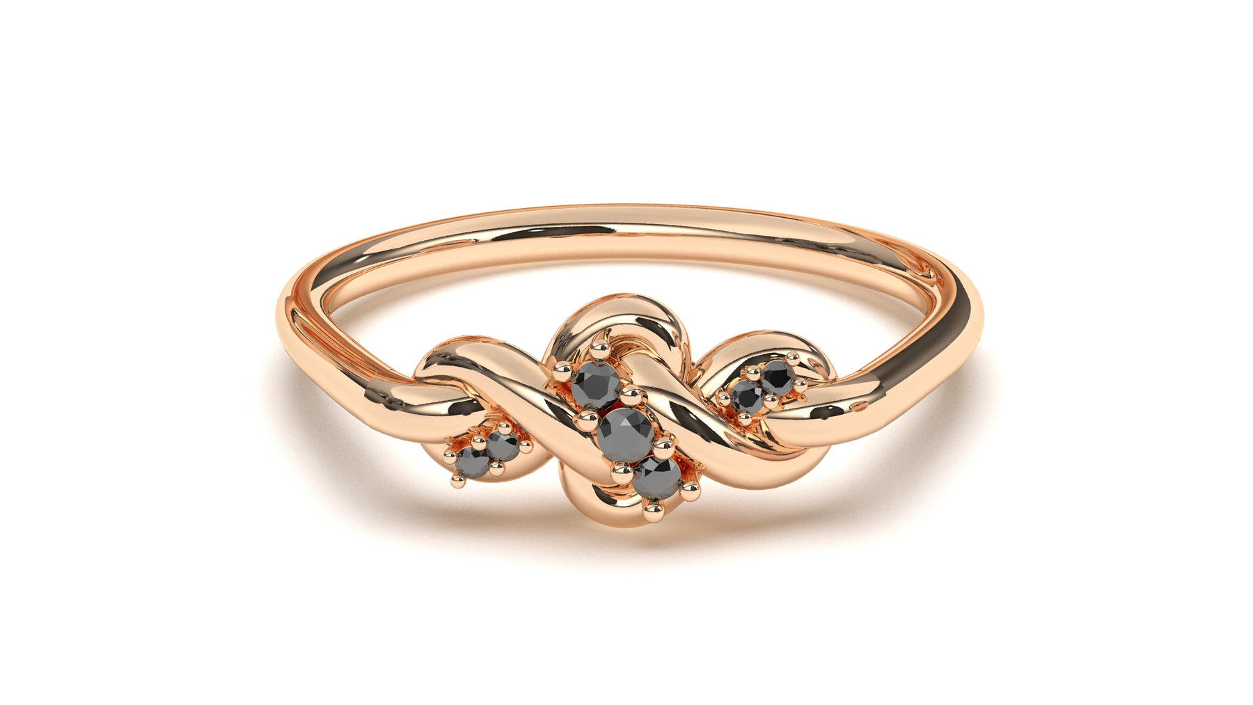 Braid Style Ring Encrusted with Round Black Diamonds | Knots Twist V